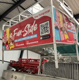 De Fun-Slide van The Fungroup is een grote, mobiele glijbaan-attractie van ongeveer 9 meter hoog en 30 meter lang, ontworpen voor maximale fun en visueel spektakel op elk event. De attractie laat meerdere deelnemers tegelijk naar beneden glijden, wat zorgt voor een dynamische en interactieve beleving. Dankzij het kleurrijke en opvallende design is de Fun-Slide van The Fungroup een echte blikvanger op festivals, bedrijfsfeesten en publieksevenementen. Bovendien zorgt The Fungroup voor een veilige opstelling en professionele begeleiding, zodat bezoekers zorgeloos kunnen genieten van deze toegankelijke en plezierige attractie.