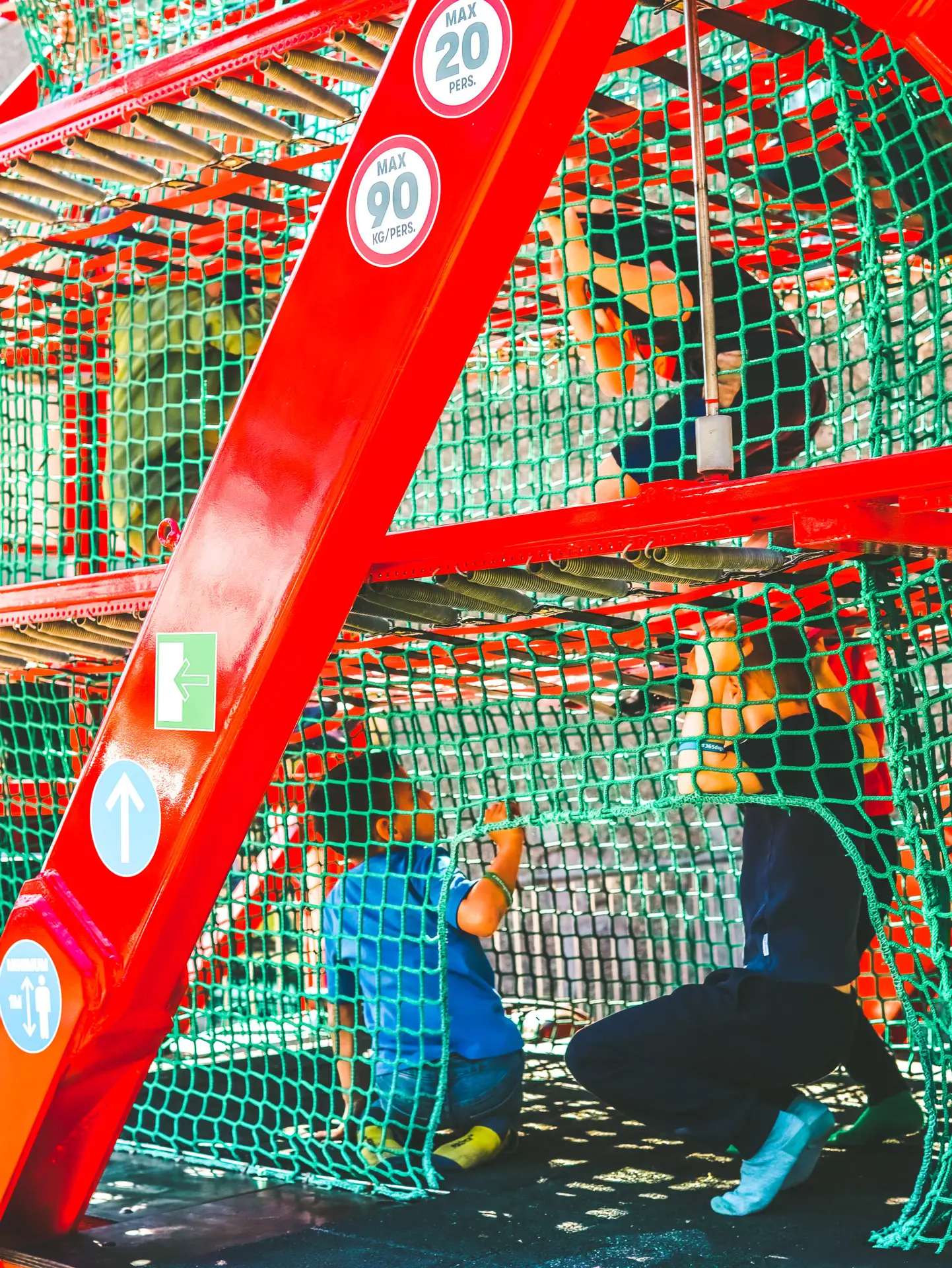 Deze attractie heeft een capaciteit van maximaal 20 kinderen per sessie, dankzij de ruime klimzone en de stevige veiligheidsnetten.