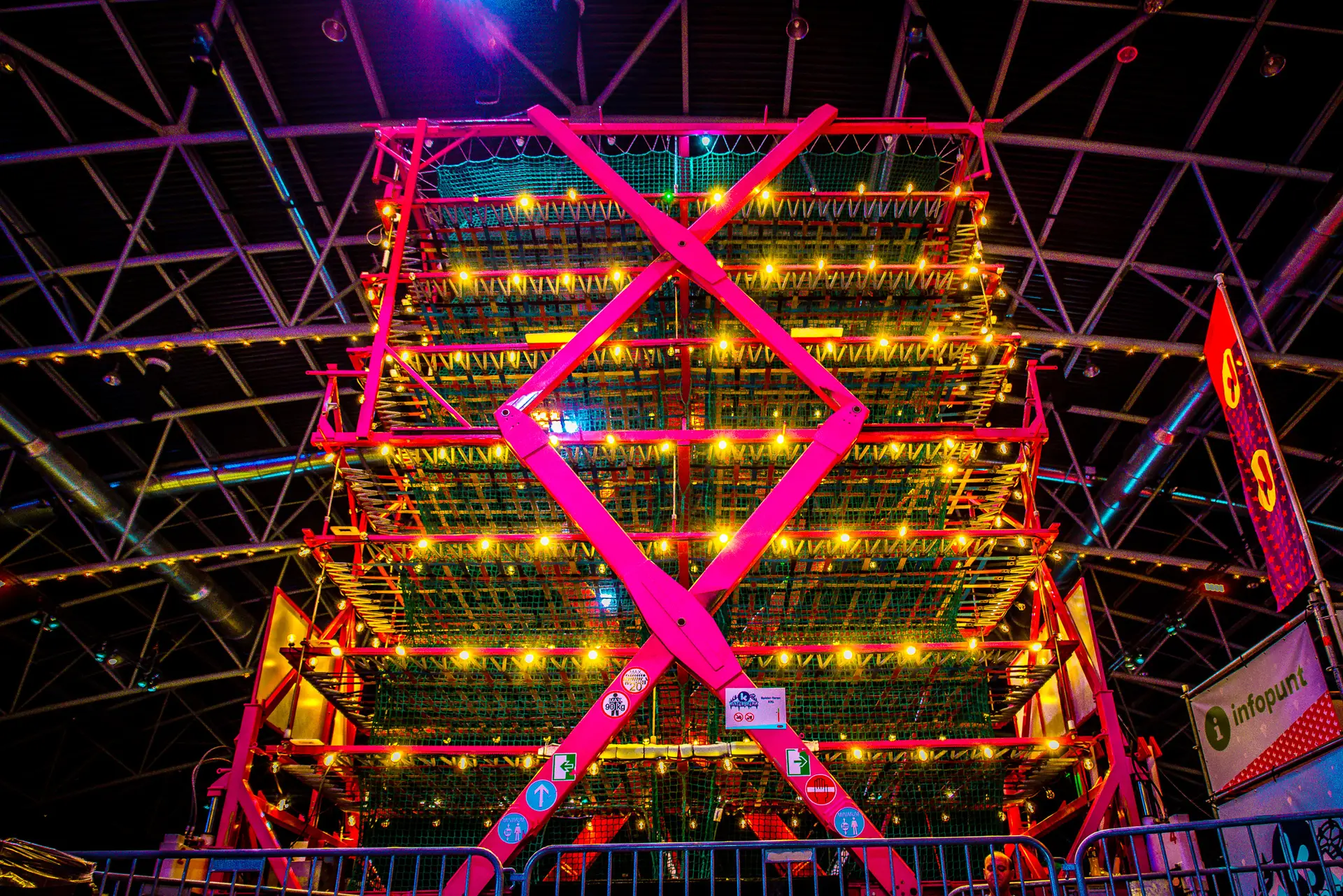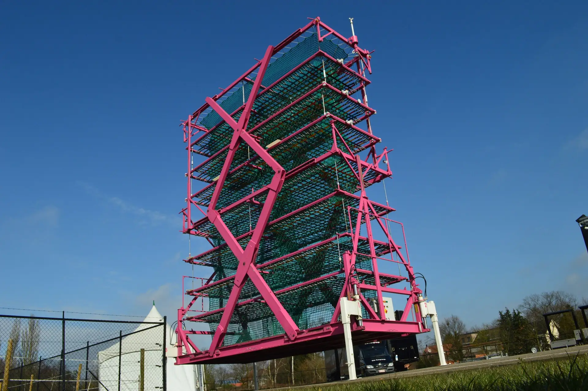Bij deze mobiele klimattractie kan je door een web van banden naar een hoogte van 10 meter klimmen.