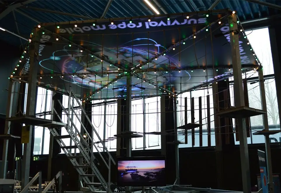 De Survival-Rope-Mobile is een mobiele attractie die in minder dan 1 uur tijd operationeel is.
