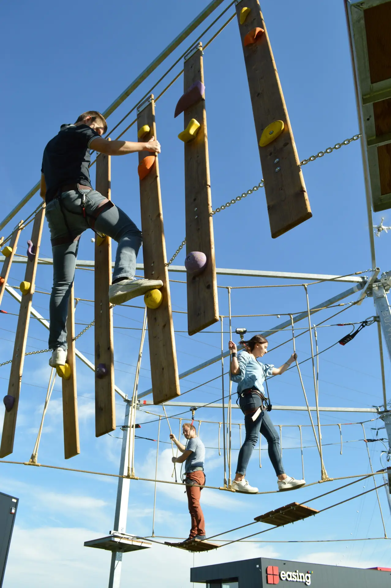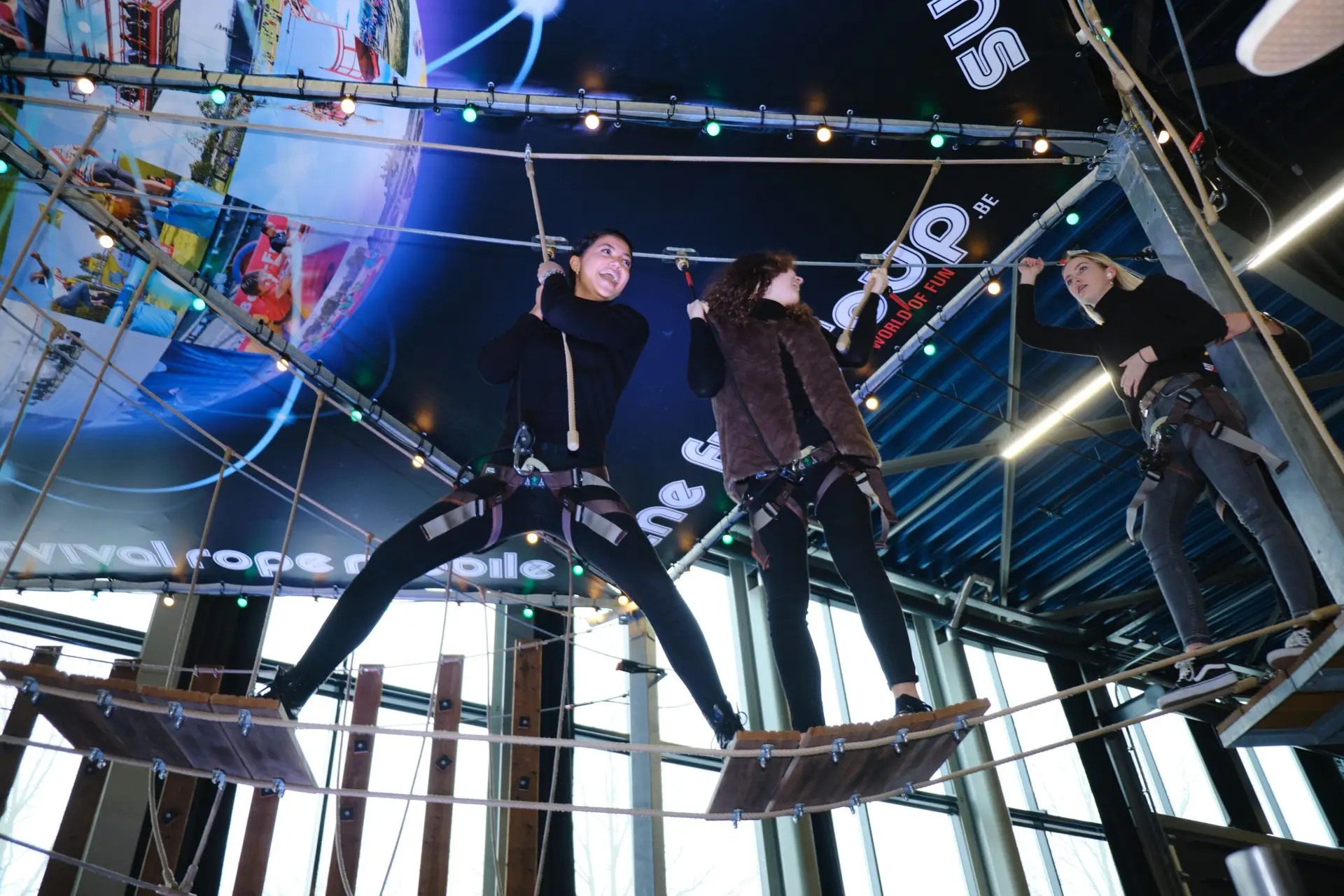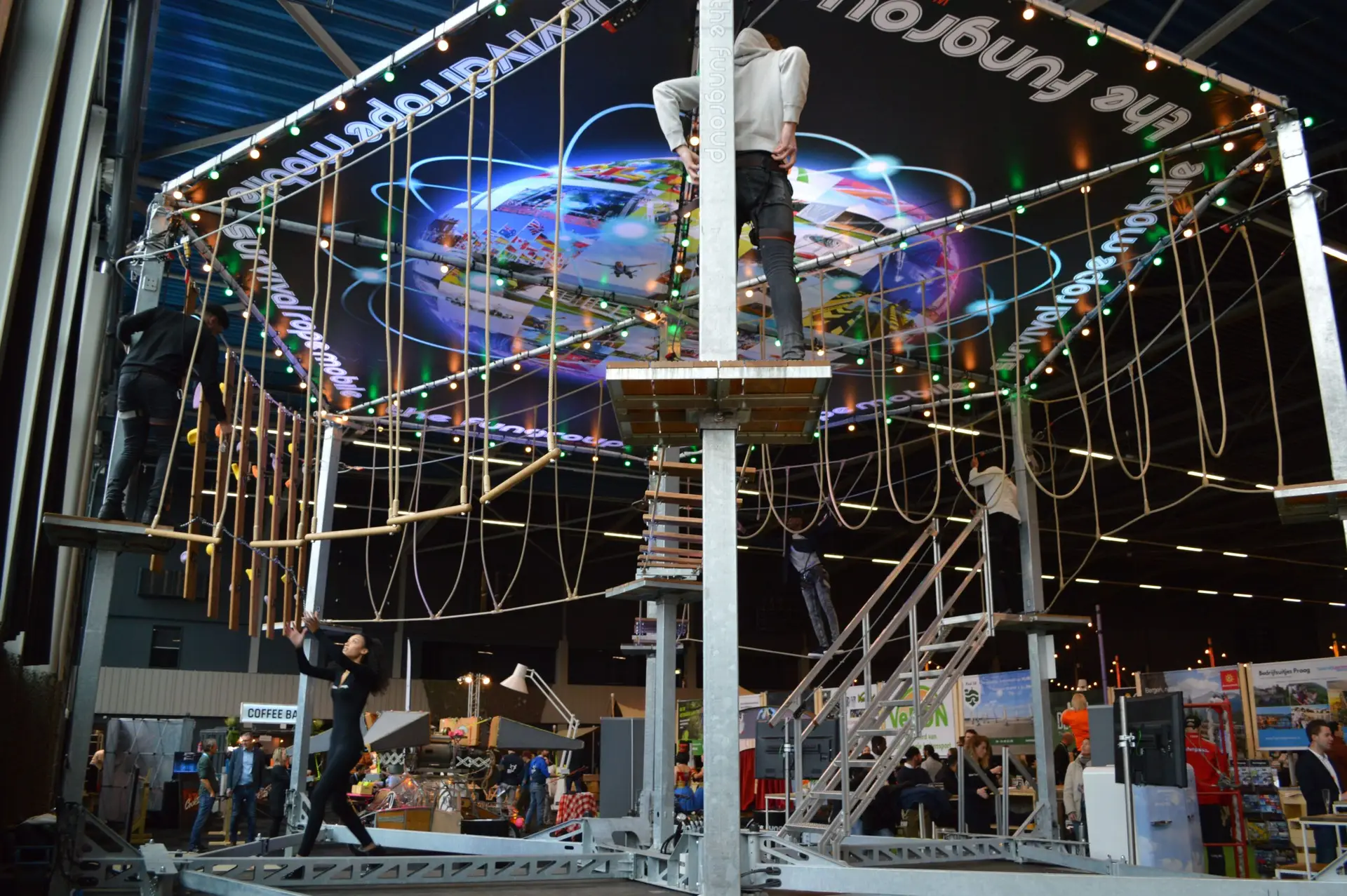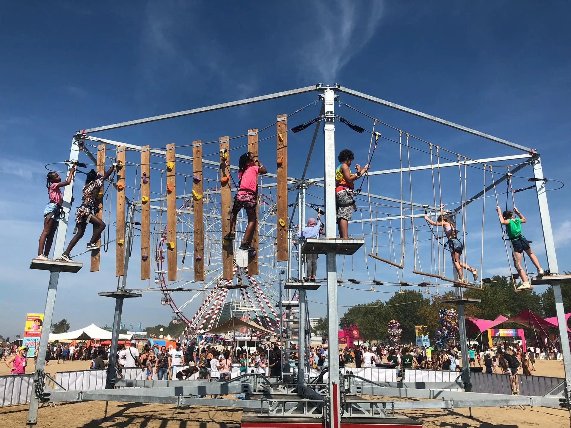 Dit is een mobiele survival-attractie met 8 touwenparcours waarbij deelnemers zo snel mogelijk naar de overkant proberen te geraken. Elk parcours vraagt evenwicht, concentratie en doorzettingsvermogen.