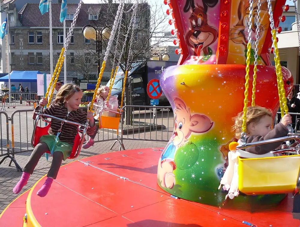 De zweefmolen is een klassieke kermisattractie waarbij bezoekers in stoeltjes rond een centrale mast draaien en zachtjes door de lucht zweven. Het is een attractie met een nostalgische charme die vooral bij kinderen zeer populair is.